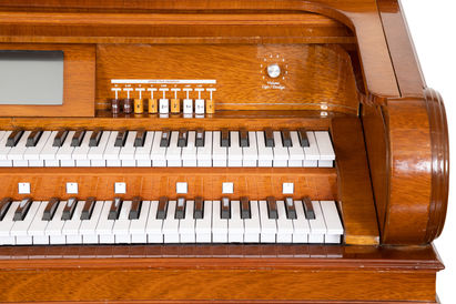 - Teclado Superior e Inferior com 160 sons digitais multiplicados por 4 que podem ser misturados entre si ou com os Drawbars
